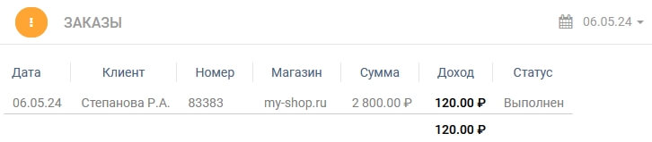В нашем конкретном случае звонок был совершён с целью оформления заказа и мы видим этот заказ в статистике партнёрки: