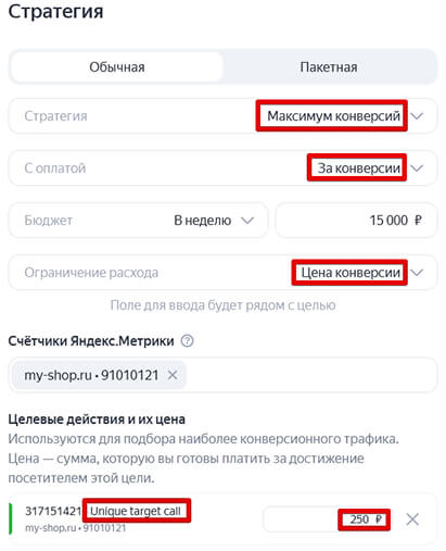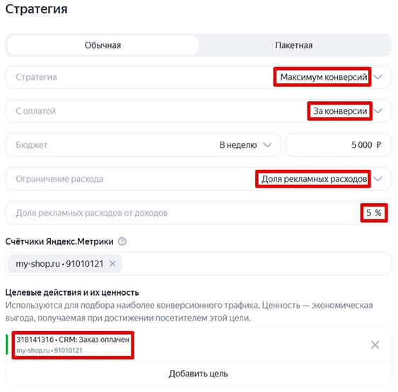 Ну, и, конечно же, экспорт полных данных о заказах открывает самую желанную и безубыточную стратегию Я.Директ, при которой вы платите определённый процент и только за реально выполненные заказы.