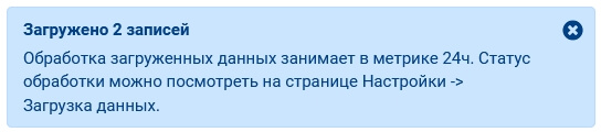 обработки загруженных данных можно в метрике, на странице Настройка -> Загрузка данных в разделе Последние действия