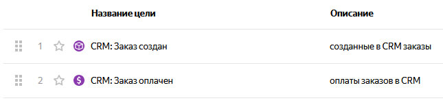 После завершения обработки данных заказов, в метрике автоматически появятся новые цели: