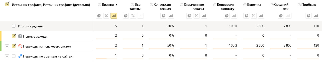 показывающий заказы, конверсию, доход и т.п. с разбивкой по источникам трафика:
